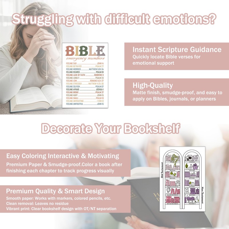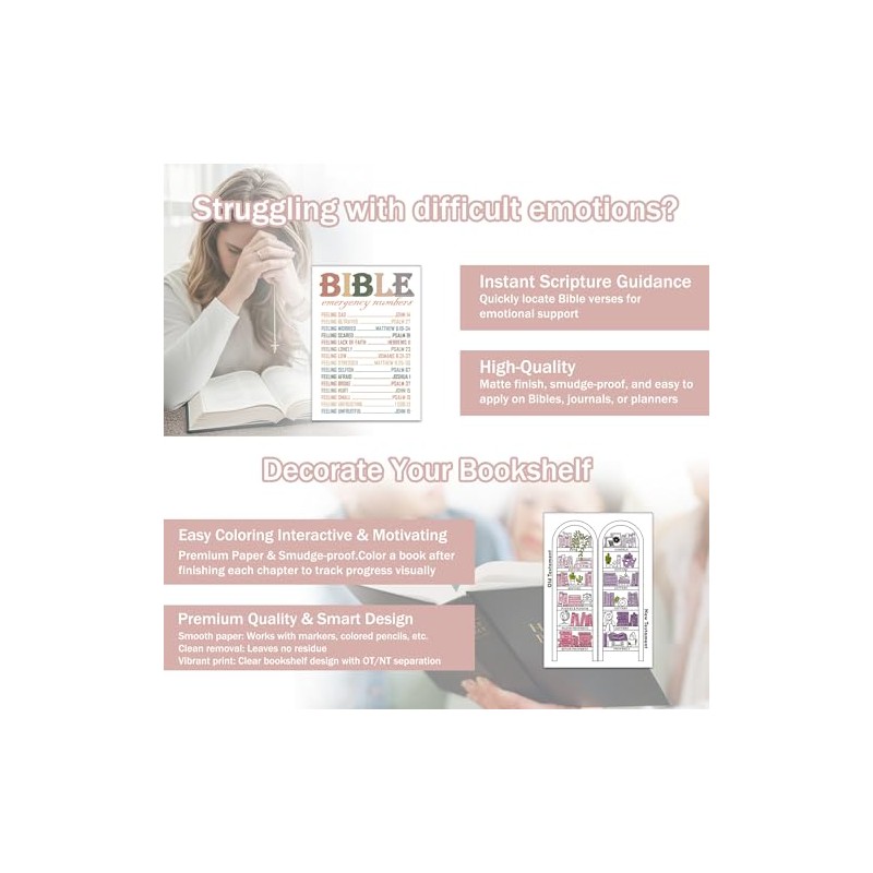 - 【Value Set】: You will receive 1 set of premium Bible study supplies, including Bible Tabs, Books of the Bible sticker and Emergency Numbers Sticker - perfect for decorating your study Bible for women and fueling your ongoing exploration of Scripture.
