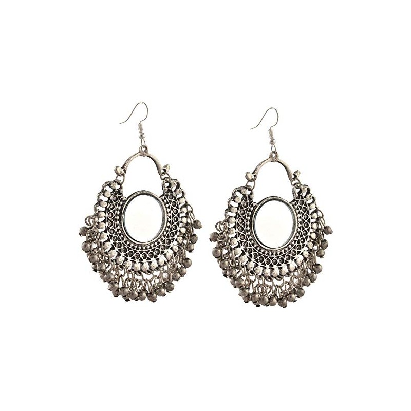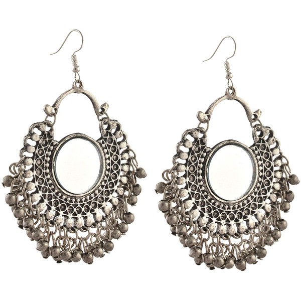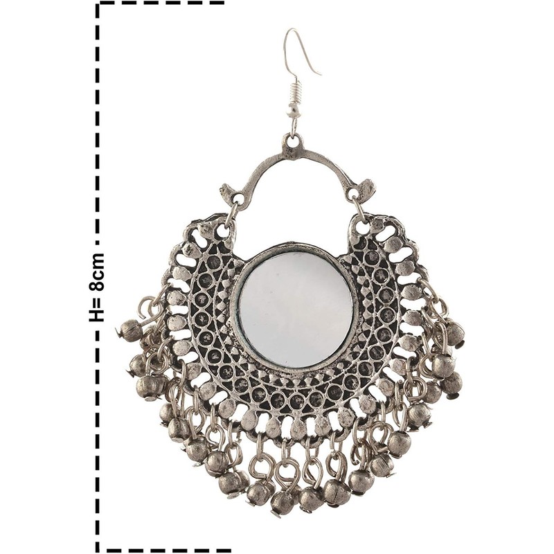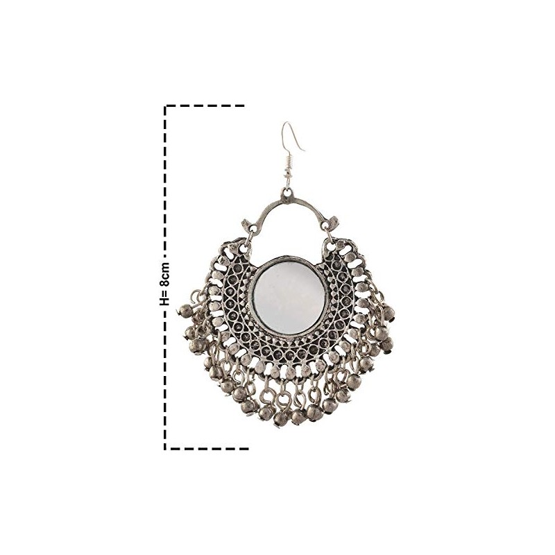 Zephyrr Jewellery German Silver Afghani Dangler Hook Chandbali Earrings Mirrors