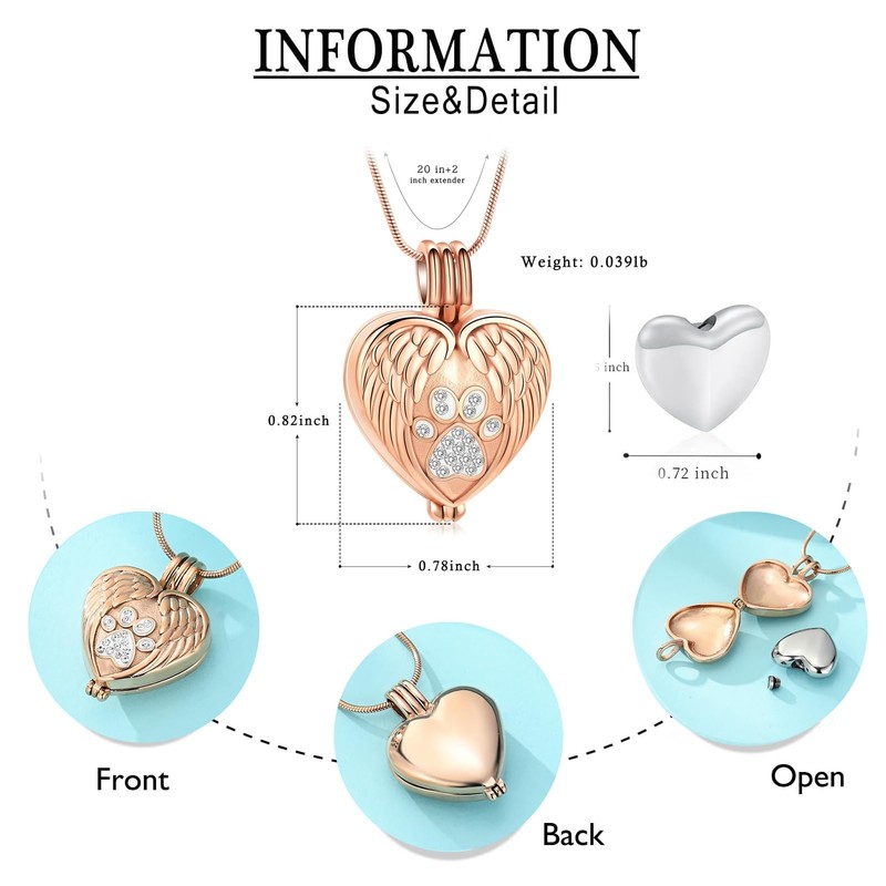 - 🐾2.【Size & Design 】Size:0.78*0.82 inch.The heart urn necklace for ashes with paw print, which symbolized your love and blessing for your pet and keep them close to your heart.