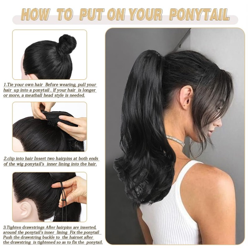- 2.Drawstring Ponytail Design: This wavy curly drawstring ponytail is held in place by two clips and a drawstring. It only takes a few minutes to put on. It is stable and prevents accidental hair loss. The mesh surface is also very breathable.