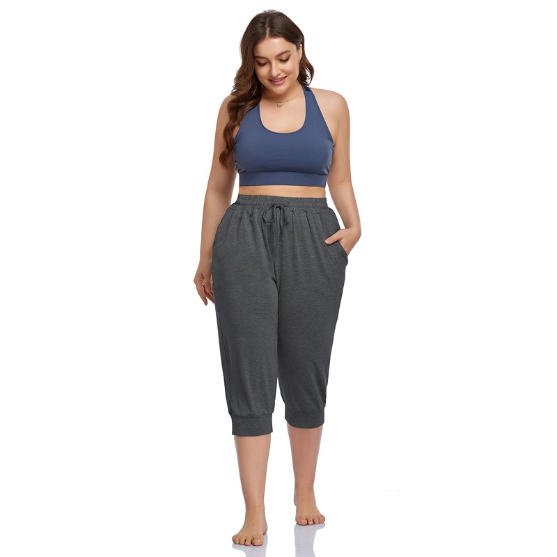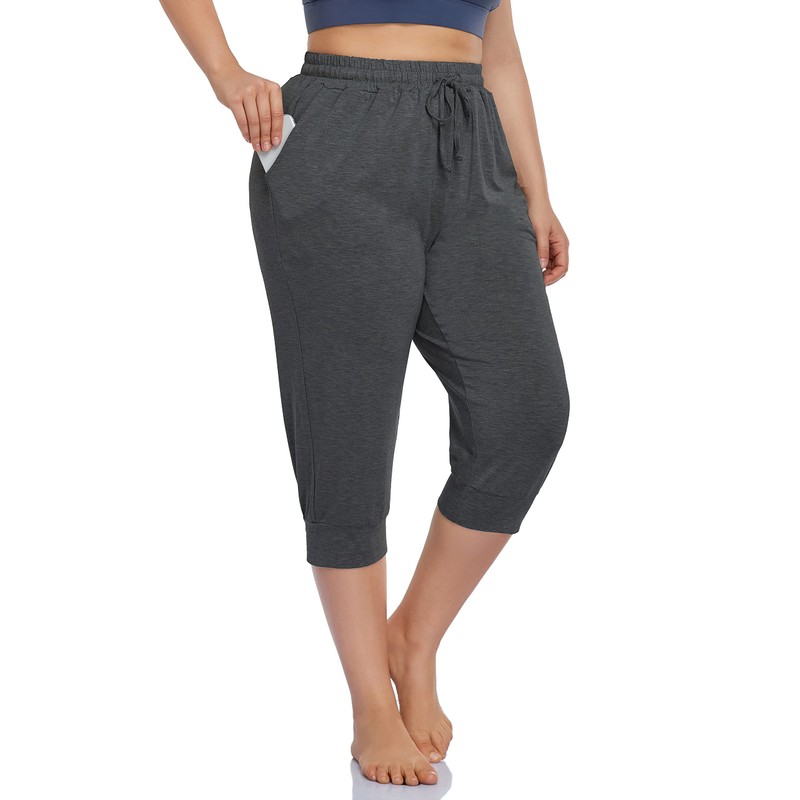 ZERDOCEAN Women's Plus Size Active Yoga Lounge Indoor Capri Casual Comfy Relaxed Joggers Pants with Pockets Drawstring