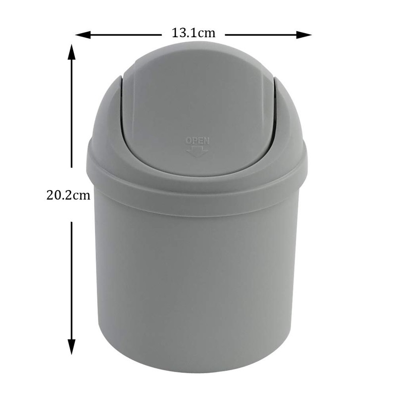 Zerdyne 2 L Plastic Mini Trash Can with Swing-Top Lid, Grey Desktop Garbage Bin