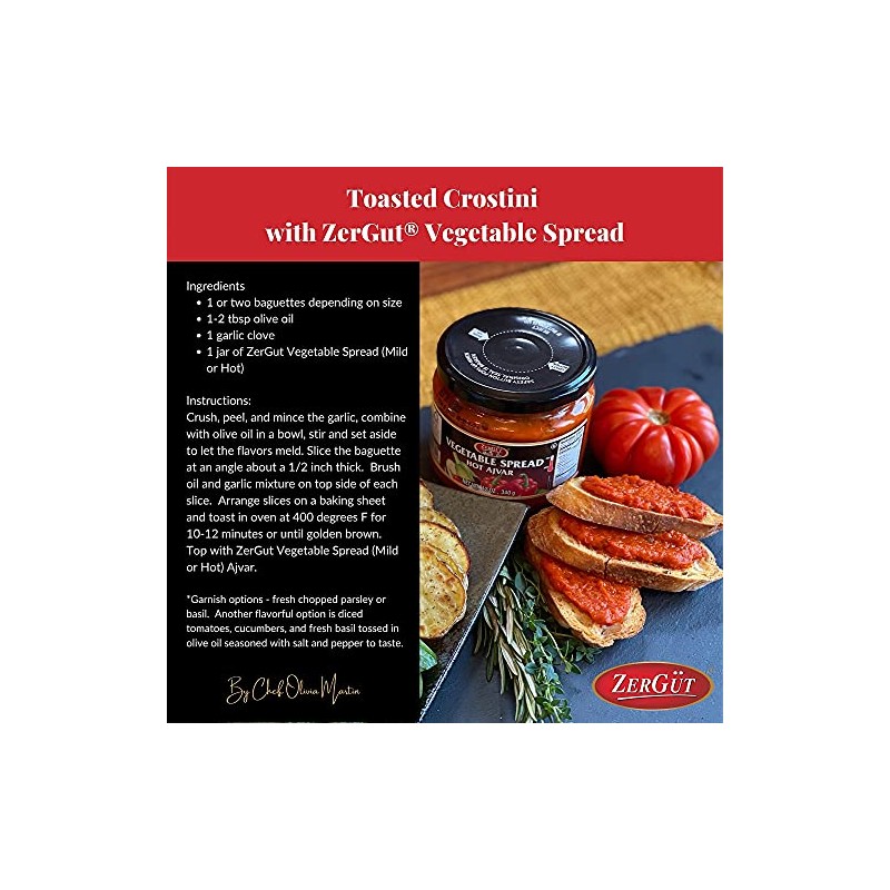 - Since 1966, the Zergut brand, meaning “VERY GOOD” in German, has offered a unique line of freshly packed fruit and vegetable spreads, dips, appetizers, pickles, grape leaves and more.