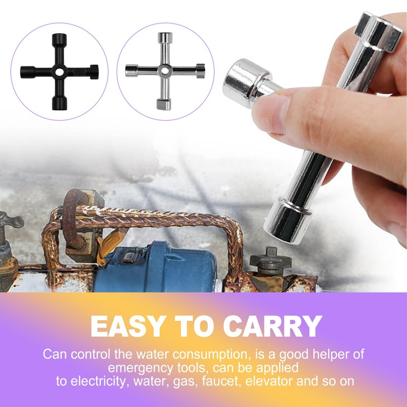 Gain reliable access to utility shut-offs with this heavy-duty 4-way valve key set. Crafted from corrosion-resistant steel with a protective coating, these tools withstand tough conditions for long-lasting performance. Each compact key (approx. 2.83 x 2.83 x 0.57 inches) features a versatile 4-in-1 design to fit multiple valve types commonly found on outdoor faucets and service panels.