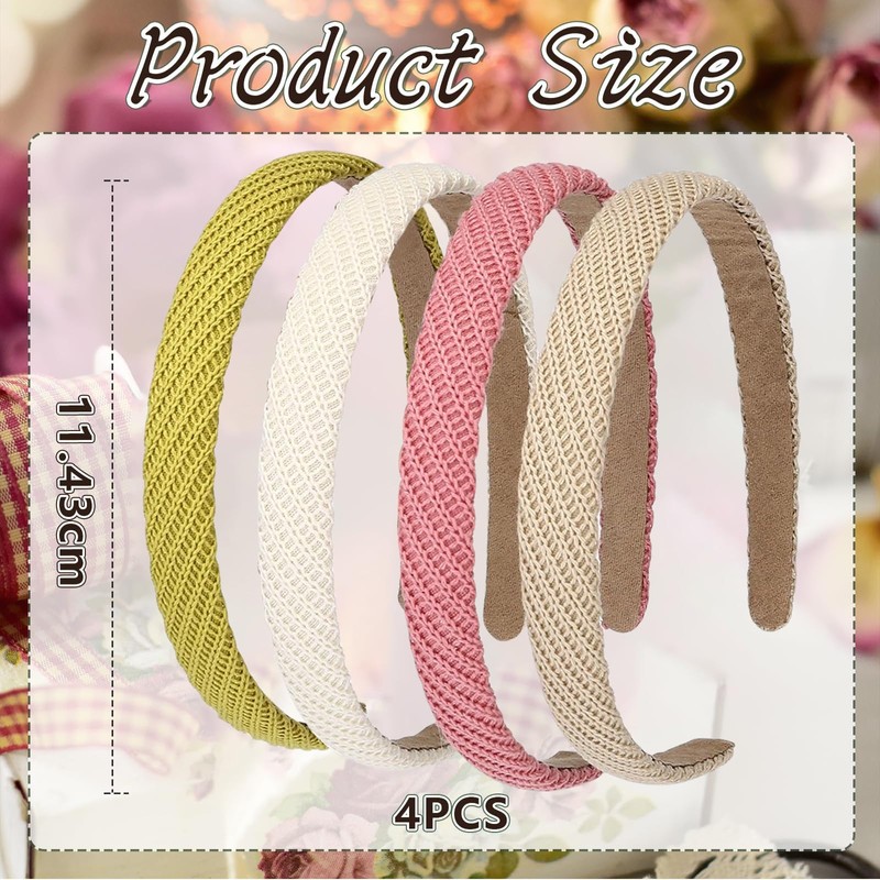 - Versatile Set: This set includes 4 trendy headbands in the colours Khaki, Beige, Yellow-Green and Pink, ideal for any occasion