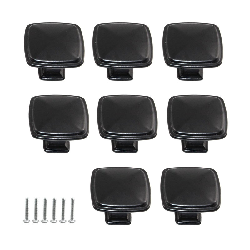 Zerniple Solid Aluminum Alloy Square Single Hole Knob Black Handle Pull for Kitchen Cabinet Cupboard Drawer Wardrobe,30.7x25.5mm (8 Pieces)