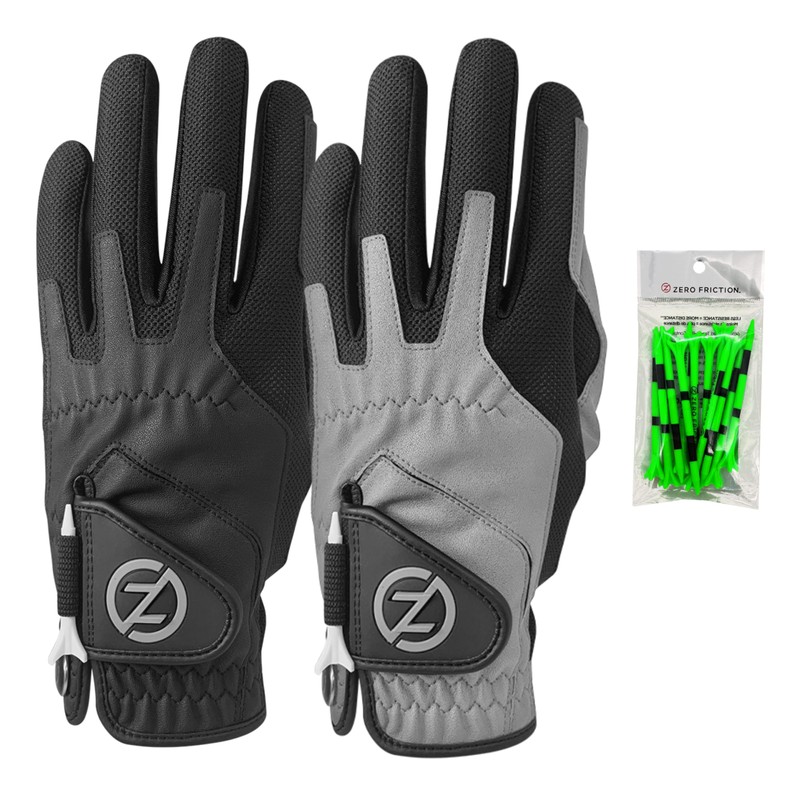 Zero Friction Men's Compression-Fit Synthetic Golf Glove (2 Pack), Left Hand, Black/Silver, One Size