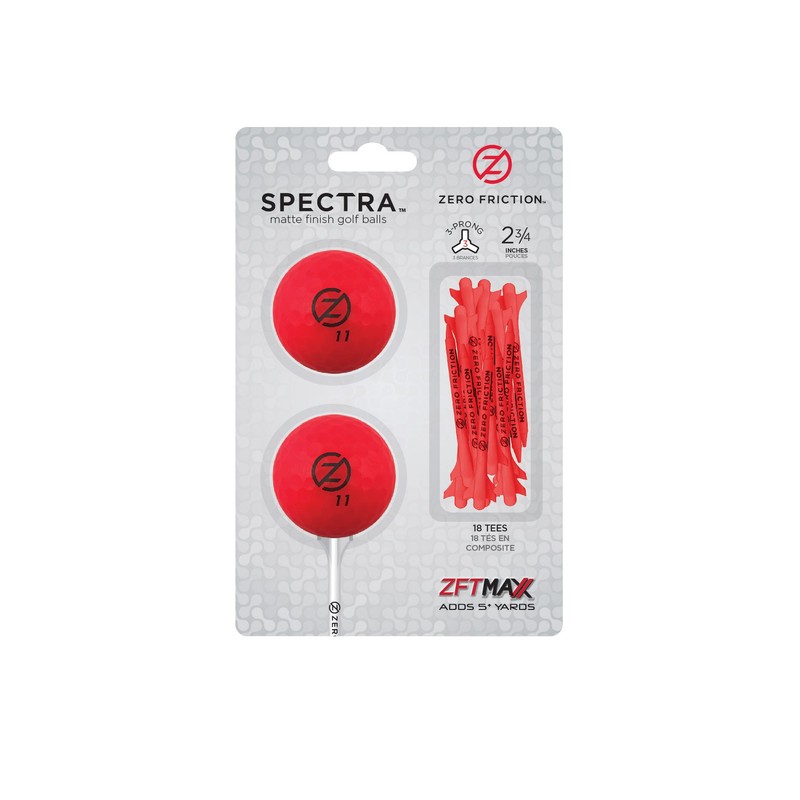 Zero Friction Spectra 2 Ball/Tee Pack, Neon Red