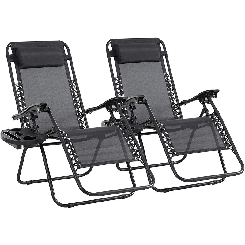 Zero Gravity Chair Folding Terrace Lounge, with Adjustable headrest Cup Holder, Suitable for Outdoor Garden Lawn (2 Piece Set) (Dark Gray)