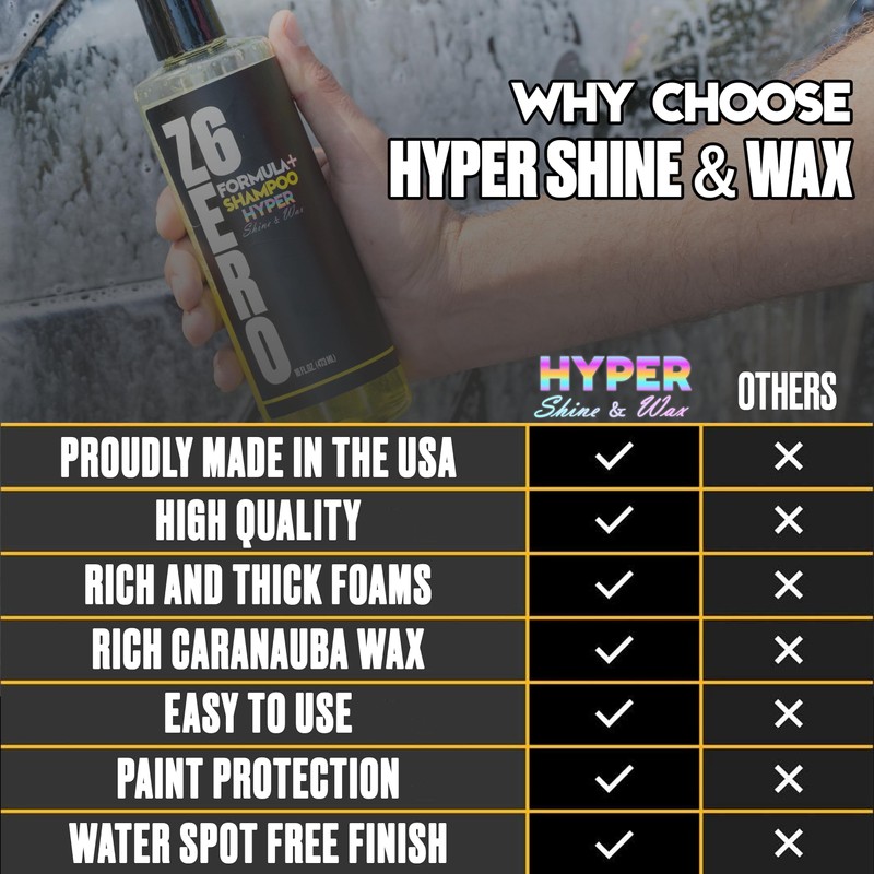 - ✅ADD HYPER SHINE SHAMPOO TO YOUR ARSENAL – Whether you're a beginner or a veteran detailer Zero Six Chemicals makes easy to use car cleaners for all. Zero Six Chemicals designs professional grade cleaning solutions to get the best results possible and are also simple enough for even a beginner to achieve satisfying results. Hyper Shine Shampoo also adds an unparalleled level of shine to your ride. Hyper Shine Shampoo is proudly made in the USA.