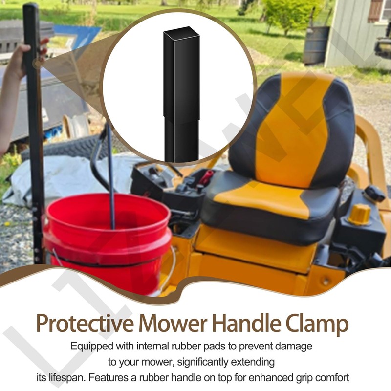 - Protective Mower Handle Clamp: Equipped with internal rubber pads to prevent damage to your mower, significantly extending its lifespan. Features a rubber handle on top for enhanced grip comfort.
