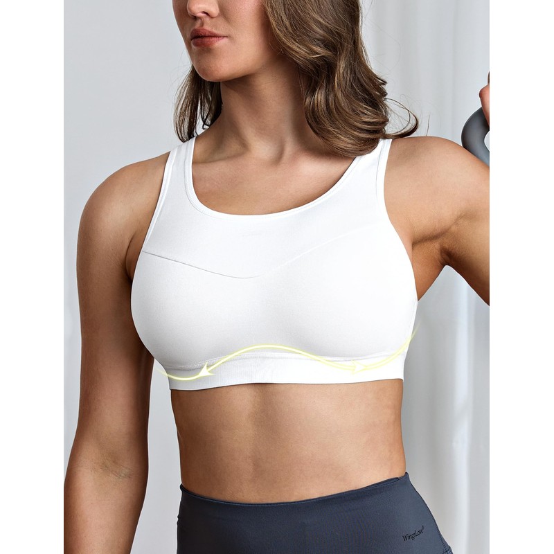 ZeroBound Women's Workout Bra - Adjustable Support Sports Bra with Mesh Back Design Wide Straps Full Elastic Band for Yoga Gym (White,34C)