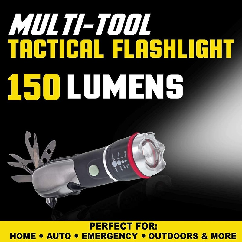 - Made of hardened reinforced long-lasting stainless steel, this car emergency tool flashlight multitool with pocket knives is sure to provide needed assistance even unexpected emergency situations