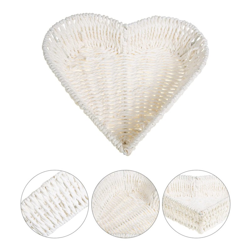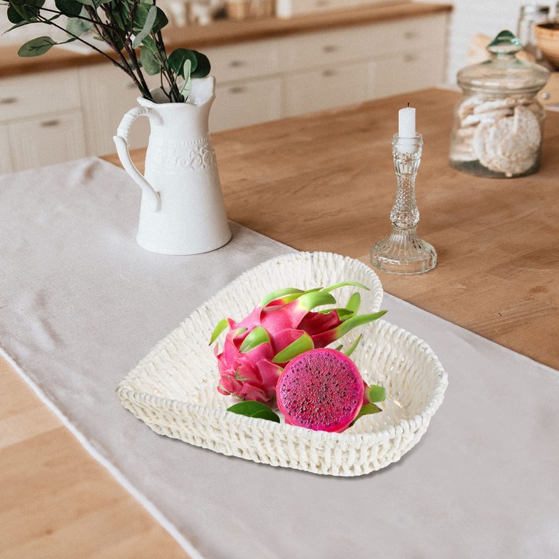 Zerodeko Heart Shaped Basket Snack Basket Tabletop Rattan Fruit Basket Sundry Basket Natural Wicker Bowl Willow Woven Bread Serving Basket for Table Supplies White