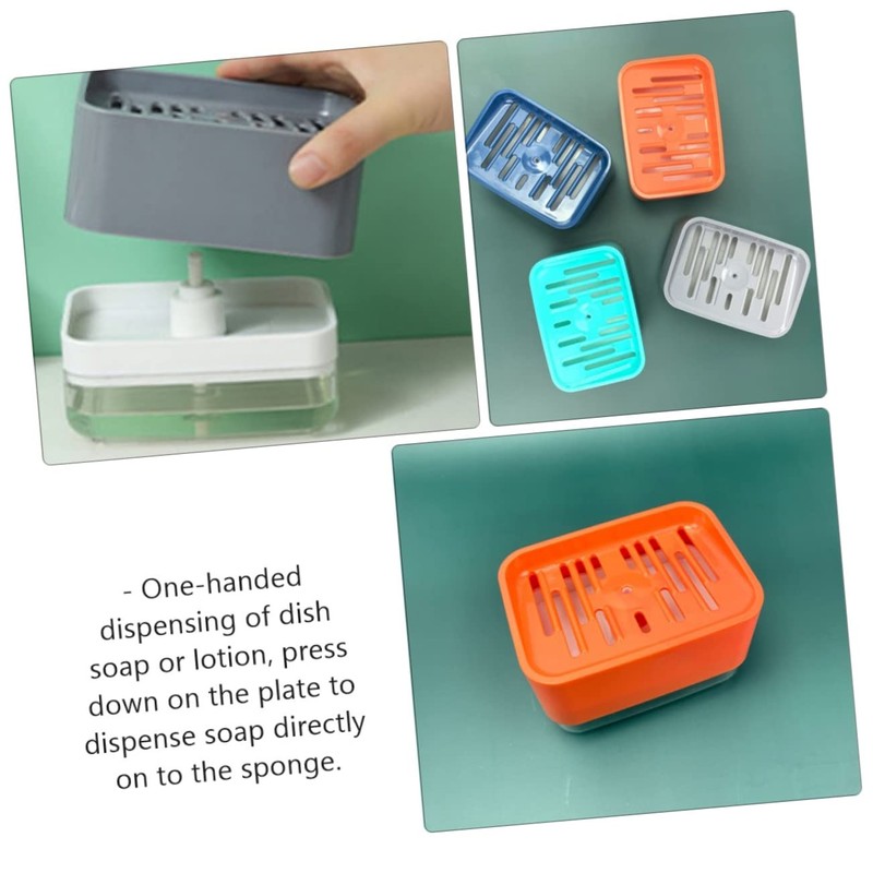 - Dish Liquid Dispenser: One-handed dispensing of dish soap or lotion, press down on the plate to dispense soap directly on to the sponge.