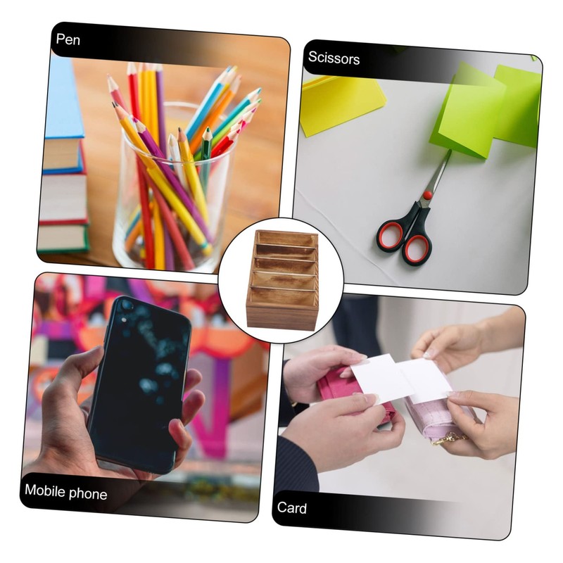 - The storage box can organize all your office supplies, pen/ pencil, scissors, cellphone and cards or other small supplies remote control holder.