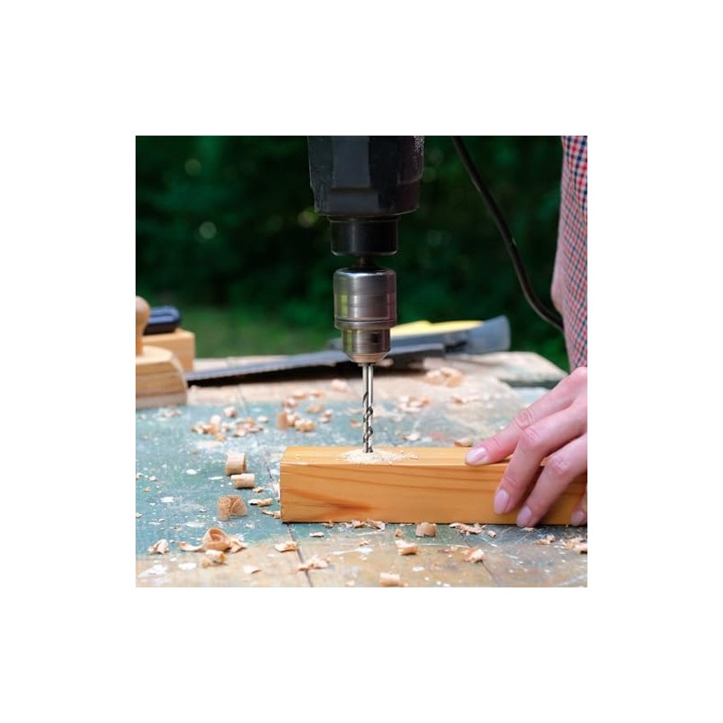 This spur point drill bit is made of high speed steel for good hardness and durability for woodworking.The drill bit has a 1/4inch hexagonal shape shank than could fit into many electric drill chucks.