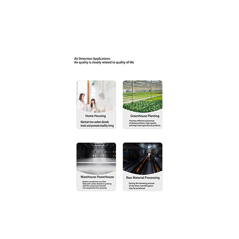 Temperature and . Temperature and humidity monitor: temperature and humidity are closely related to human body, plants or storage environment. This air quality tester has the function of real-time monitoring of temperature and humidity. - CO2 Monitor CO2 Meter. [Carbon Dioxide Concentration Alerts]: The CO2 concentration alert value can be customized to make our life, work or production environment safer.