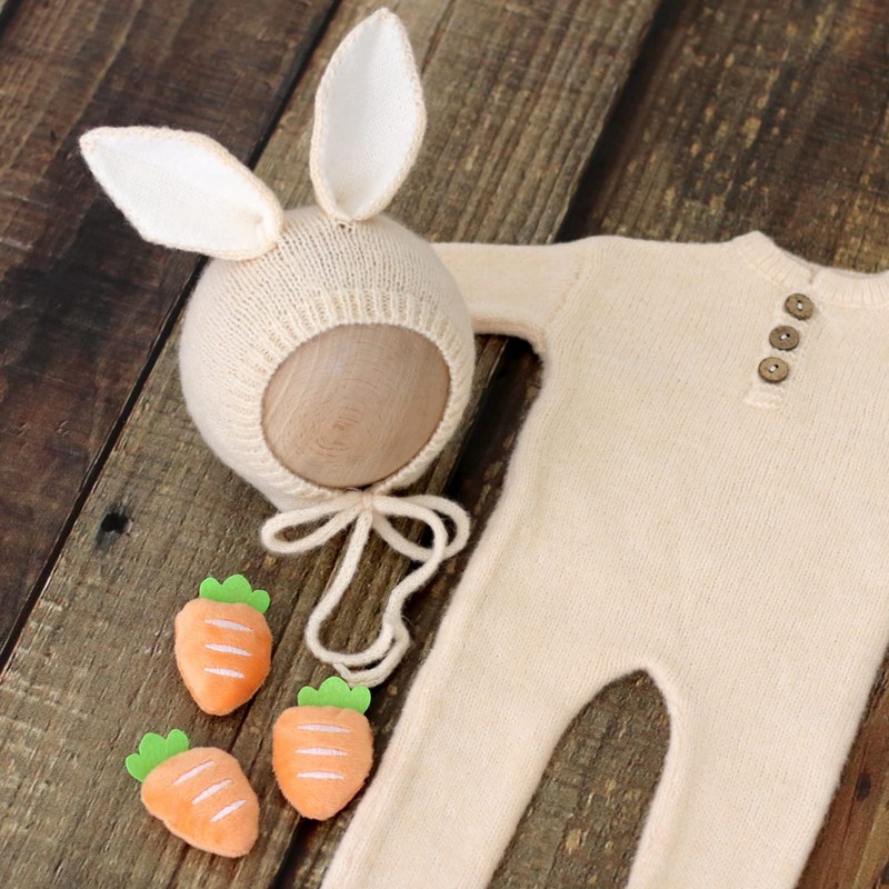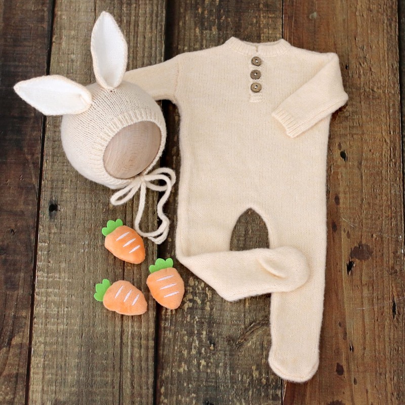 - Newborn Photoshoot Easter Outfit: 5-Piece (Romper + Bonnet + 3 Carrot) - Capture newborn fairy princess moments with our knitted Bunny photography set. Fits most 5-9lb newborns (average birth weight) / 0-30 Days