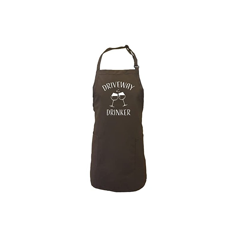 This fun apron is perfect for the "Driveway Drinker-Wine"! This design is featured on an apron that is made from durable 7.5 oz., 65/35 poly-cotton twill, it features 2 large patch pockets and an adjustable neck, plus extra long 39 inch ties that make this apron simple yet perfect for almost any use. Size: 23" W x 30" L. Printed in the USA on an imported apron.