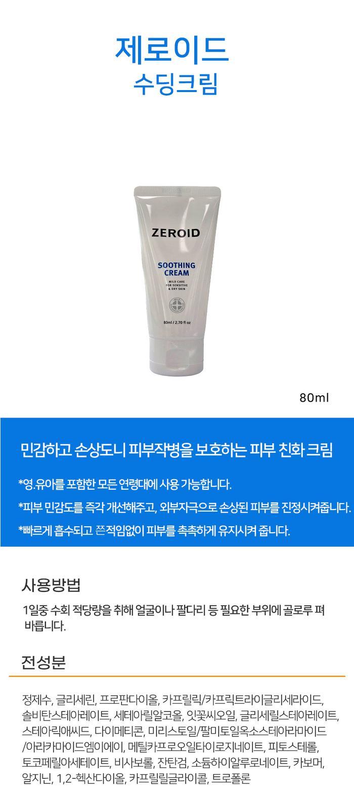 Zeroid Soothing Cream 80ml x 2 / 제로이드 수딩 크림 80ml x 2개