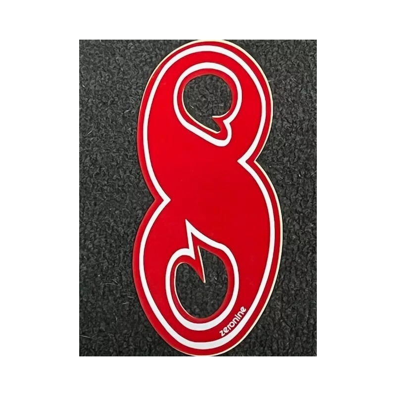 ZERONINE Large NOS Red White ZERONINE STADIUM Number 8 Old School BMX Plate Decal Sticker