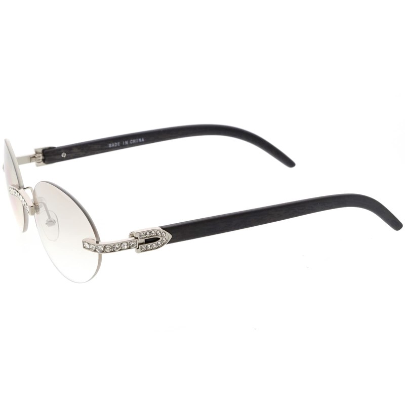 zeroUV Luxe 90s Inspired Premium Rhinestones Decorated Oval Sunglasses 56mm (Silver/Clear Fade)