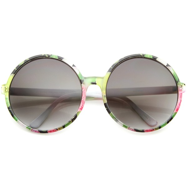 zeroUV Women's Fashion Floral Print Gradient Lens Oversize Round Sunglasses 66mm (Pink-Yellow/Lavender)
