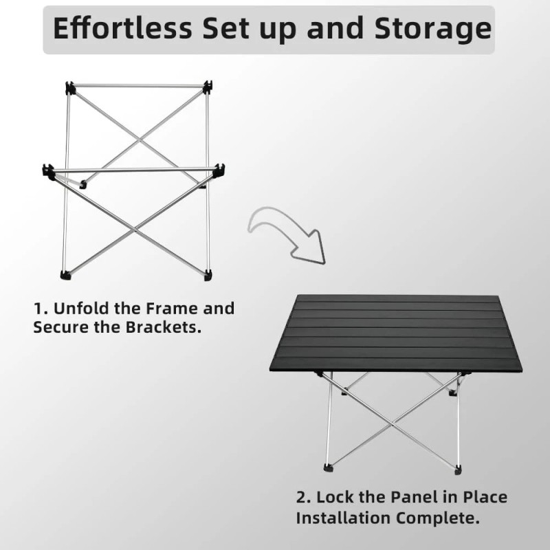 [No tools or assembly required] Setting up our camping table is quick and hassle-free. Simply unfold the table and lock the legs into place, and you're ready to go.Only two assembles,no tools!