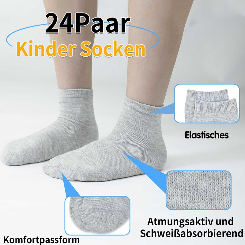 - Versatile set: our children's socks set consists of 24 pairs of socks in the classic colours black, white and grey, ideal for any school child. Perfect for boys and girls looking for a stylish and practical solution.