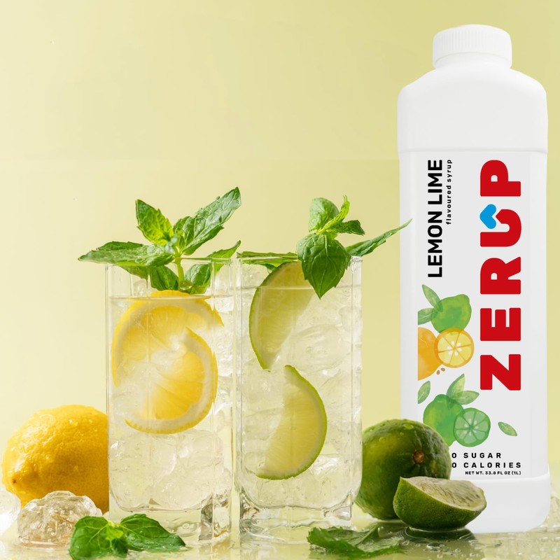 Zerup Zero Sugar Lemon Lime Syrup, Sugar-Free Syrup, Zero Calories and Sugar, Clean and Sweet, Refreshing with Soda, Keto Friendly, Ideal for Sparkling Water, Tea, Yogurt and more, Indulgent Taste 33.8 Oz (1L), Pack of 4