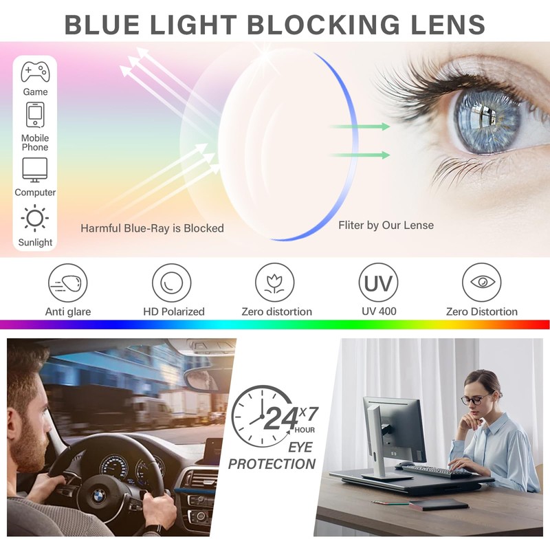 • PROTECT YOUR EYES- Compared with traditional reading glasses, ZESAKER multifocal transition eyeglasses provide clear vision at different distances with three zones. No more changing glasses for different views or squinting to read a book. The lightweight frames, flexible spring hinges, an anti-reflective lens coating, and scratch-resistant lenses, all details effectively reduce eye fatigue, headache, dizziness, insomnia, and eyestrain, further ensuring all-day comfort and good looks