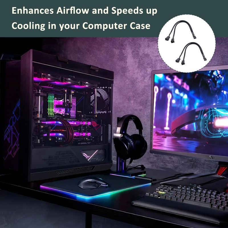 - Dual Fan Setup: Easily connect two fans to a single motherboard fan header. The pwm fan splitter cable is ideal for boosting airflow and cooling in gaming PCs and desktops, helping maintain optimal temperatures during heavy use.