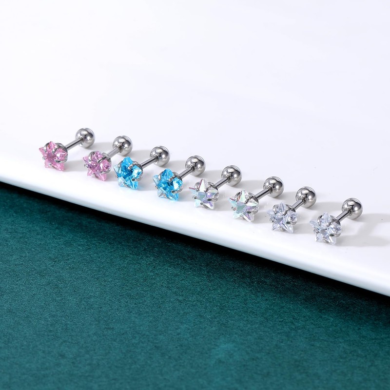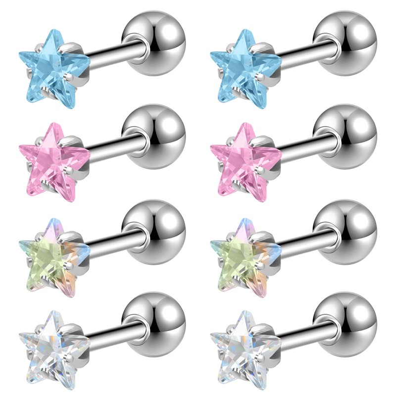 ZeSen Jewelry 4 Paar Ohrringe aus Chirurgenstahl mit kubischem Zirkonia, Knorpel-Piercing, Tragus, Helix, Conch Piercing, Chirurgenstahl, kubischer Zirkonia, kubisches Zirkonoxid
