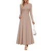 ZESICA Women's Elegant Maxi Dresses 2025 Fall Long Sleeve Button Casual A Line Boho Flowy Dress with Pockets,Khaki,Small