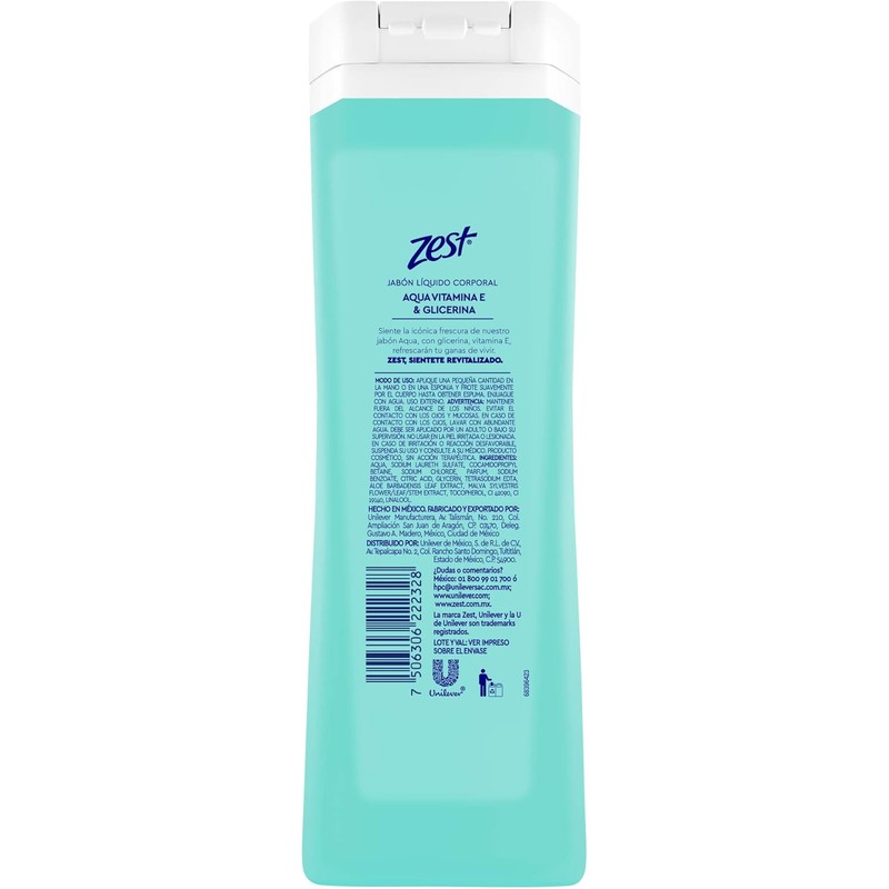 ZEST Jabón Líquido Corporal AQUA VITAMINA E Y GLICERINA 400ml