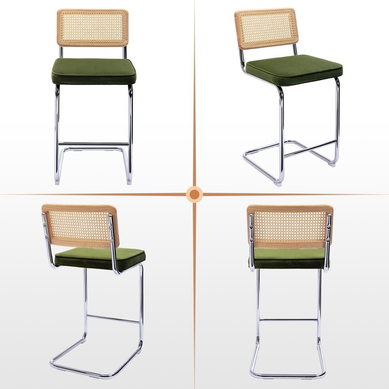 • Comfortable: This modern farmhouse bar stool features high-quality upholstery, line profile and rich texture. The velvet bar stool also enhances modern flair with its cantilever design, creating a warm vibe in any interior simultaneously due to its spotlight on comfort. Position this cane stool to draw compliments from guests and command respects