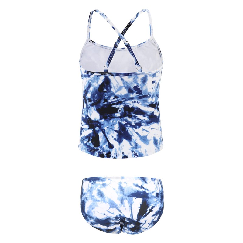 Zestonie Big Girls Two Piece Swimsuits Tankini Bathing Suit Hawaiian Swimwear for Kids Navy Tie Dye Size 12/10-12 Years