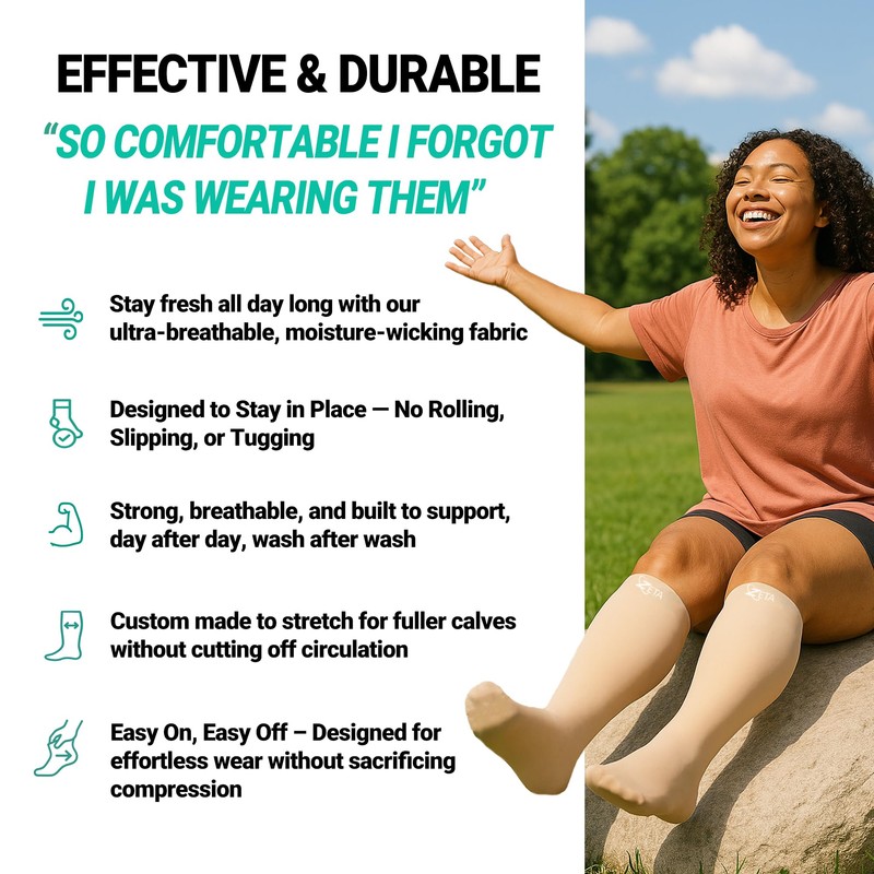 - A Passion for Plus-Size Comfort: As a small family-owned firm, we're committed to just one thing: the wellbeing of full-figured women; That's why we craft our plus size zipper compression socks to perfectly fit and flatter wide, curvaceous calves; Plus, we make sure that all our products are OEKO-TEX Standard 100 Certified for zero harmful substances