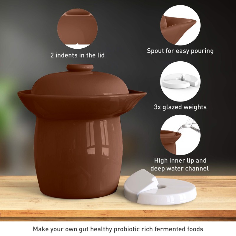 - EXPERIENCE CENTURIES-OLD TRADITION of water seal fermenting in our onggi kimchi pot with lid & glazed weights, designed to let gas escape while keeping air out for a healthy, anaerobic environment.