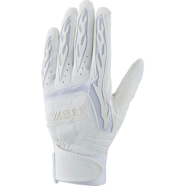 ZETT BG418HS Baseball Pro Status Batting Gloves, Two-Handed, High School Baseball Rules, White (1100), Medium, Baseball