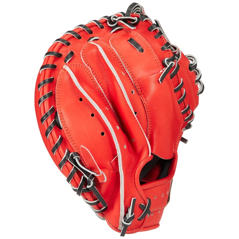 ZETT BJCB70422N Boys Soft Catcher Mitt, Neo Status VL, For Catchers, N Deep Orange x Black, For Right Throwing
