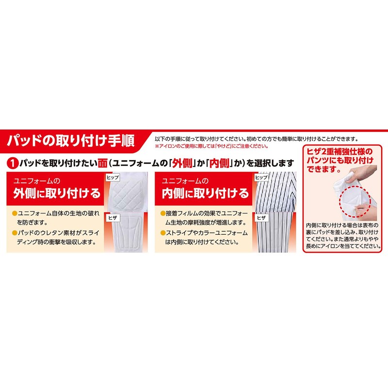 Zett Boys Baseball Sliding Pad (Iron Type/Knee) PA11JK White