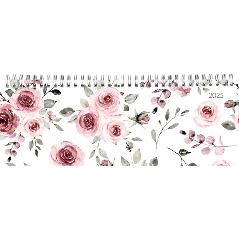 Zettler - Table Landscape Calendar 2025 Roses, 29.7 x 10.5 cm, Office Calendar with 128 Pages, 1 Week on 2 Pages, Monthly Overview, Note Area, Moon Phases, Ring Binding and German Calendar
