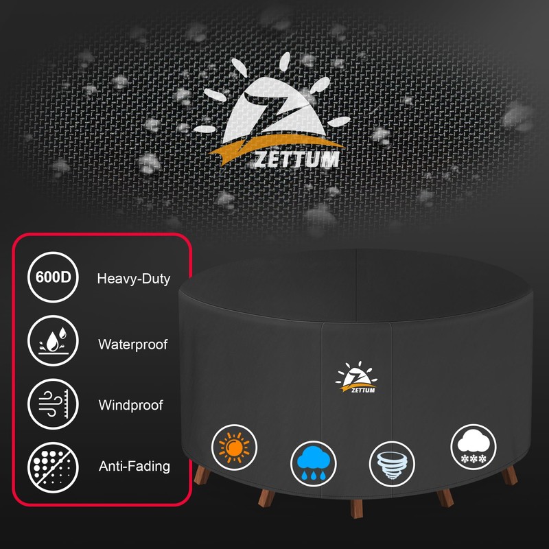 - | 600D Heavy-Duty & Super Waterproof | - Made of Premium 600-Density oxford cloth with PU coating, Zettum outdoor furniture covers are extremely heavy-duty and super waterproof. Compared with PVC type covers, our lawn furniture covers are more breathable and softer, hard to be torn. More importantly, PU-type coating is more environmentally friendly!!