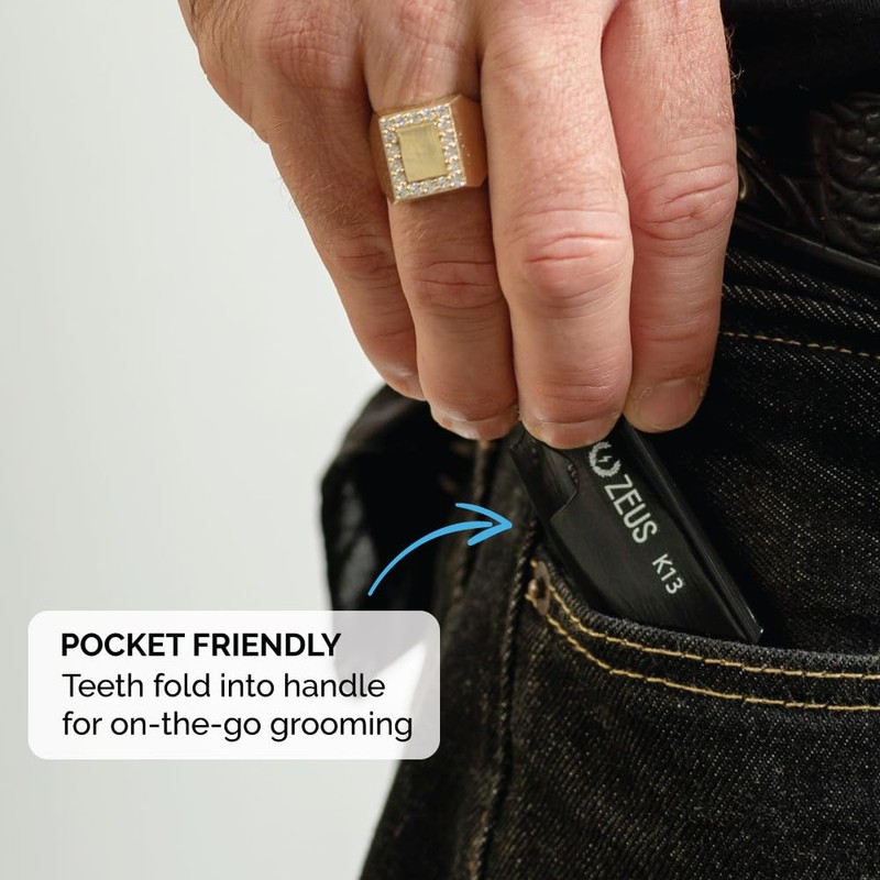 - FOLDING MUSTACHE COMB: The ZEUS Folding Mustache Comb is the perfect tool for taming mustaches of any shape and size, essential for beard and mustache grooming on the go.