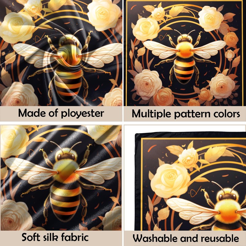 Zewurtuw Scarf Silk Feeling Large Square Satin Head Hair Wrap Lightweight Fashion Cute Aesthetic 27.5 Inches for Women Girls (D23-Bee)