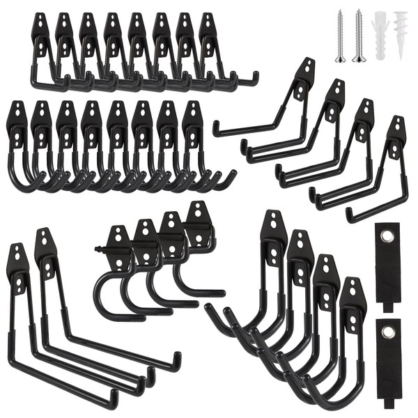 ZexHok Garage Hook Heavy Duty Wall Storage Hangers, 32 Pack Garage Storage Hooks Steel Tool Black for Ladders, Ropes, Garden Tools