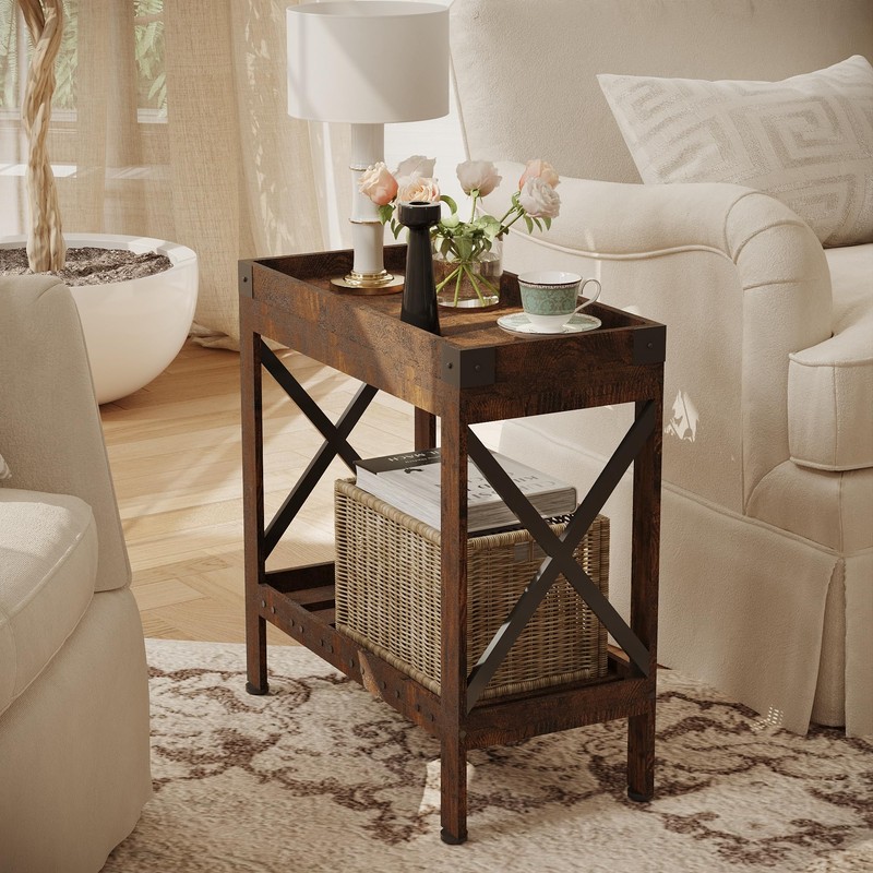 - [Perfect for Small Spaces – Fit More, Save Space] Measuring 21.7" L x 10" W x 21.7" H, this narrow side table is ideal for smaller rooms, apartments, or tight spaces. With its sleek design, it’s the perfect companion for your sofa, bed, or hallway, offering both storage and accessibility without taking up too much room.