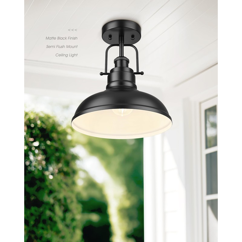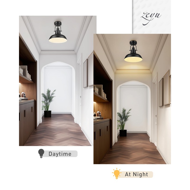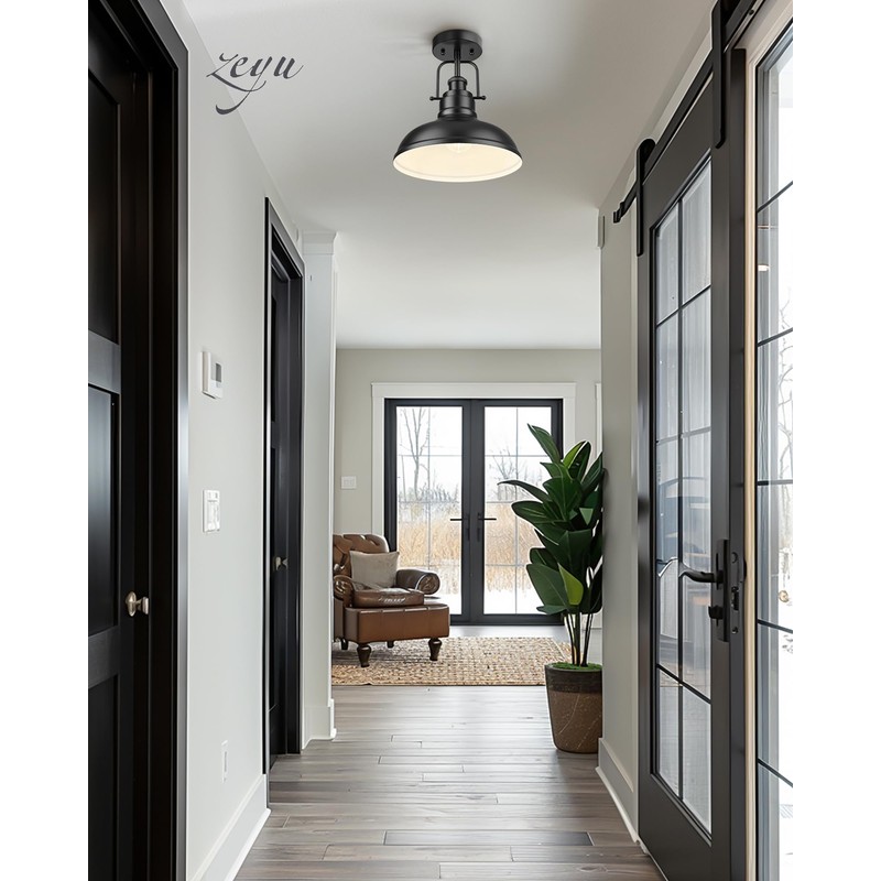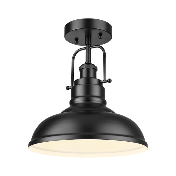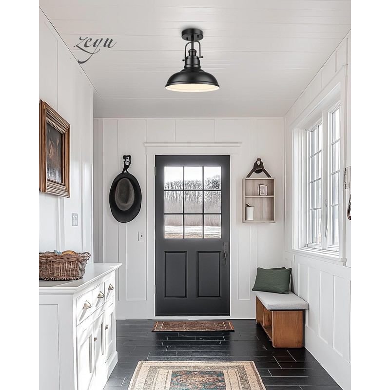 zeyu 11 Inch Semi Flush Mount Ceiling Light, 1-Light Industrial Ceiling Light Fixture for Hallway, Porch, Foyer, Matte Black Finish, ZY41-F BK